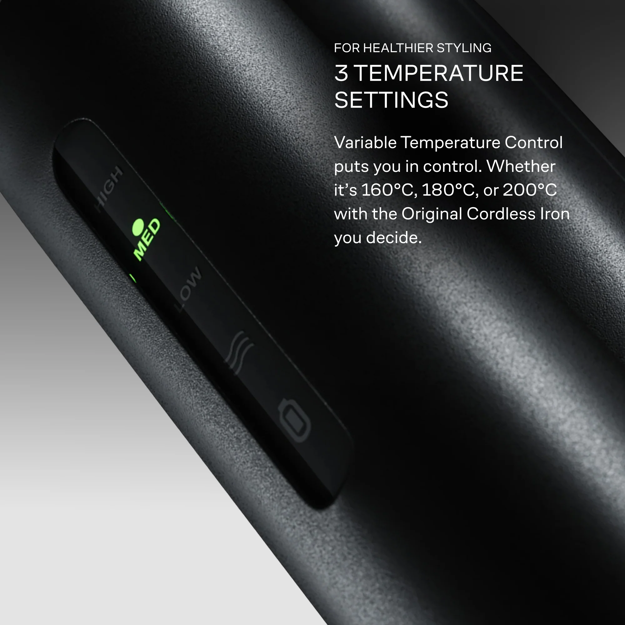 With three optimal temperatures you can ensure you’re styling without the unnecessary heat damage, wherever you are. -